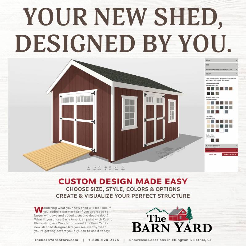 Wondering what your new shed will look like if you added a dormer? Or if you upgraded to larger windows and added a second double door? What if you chose Early American paint with Rustic Black shingles? Wonder no more! The Barn Yard’s new 3D shed designer lets you see exactly what you’re getting before you buy. Ask to use it today!