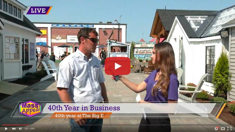On opening day of the Big E, Mass Appeal broadcast live from our display at the Big E, and host Kayla Hevey interviewed The Barn Yard Vice President Chris Skinner during the live broadcast. It’s The Barn Yard’s 40th year in business and at the Big E, so there’s reason to celebrate with a variety of new buildings, including the Victorian Poolside Bar, Classic Greenhouse, Off-Grid Solar Cabin, and more on display. With the most inventory we’ve ever had, plus the ability to design your own shed online, it’s a great time to get started on your outdoor project, and have your quality built shed, barn, or garage delivered to your home this fall.