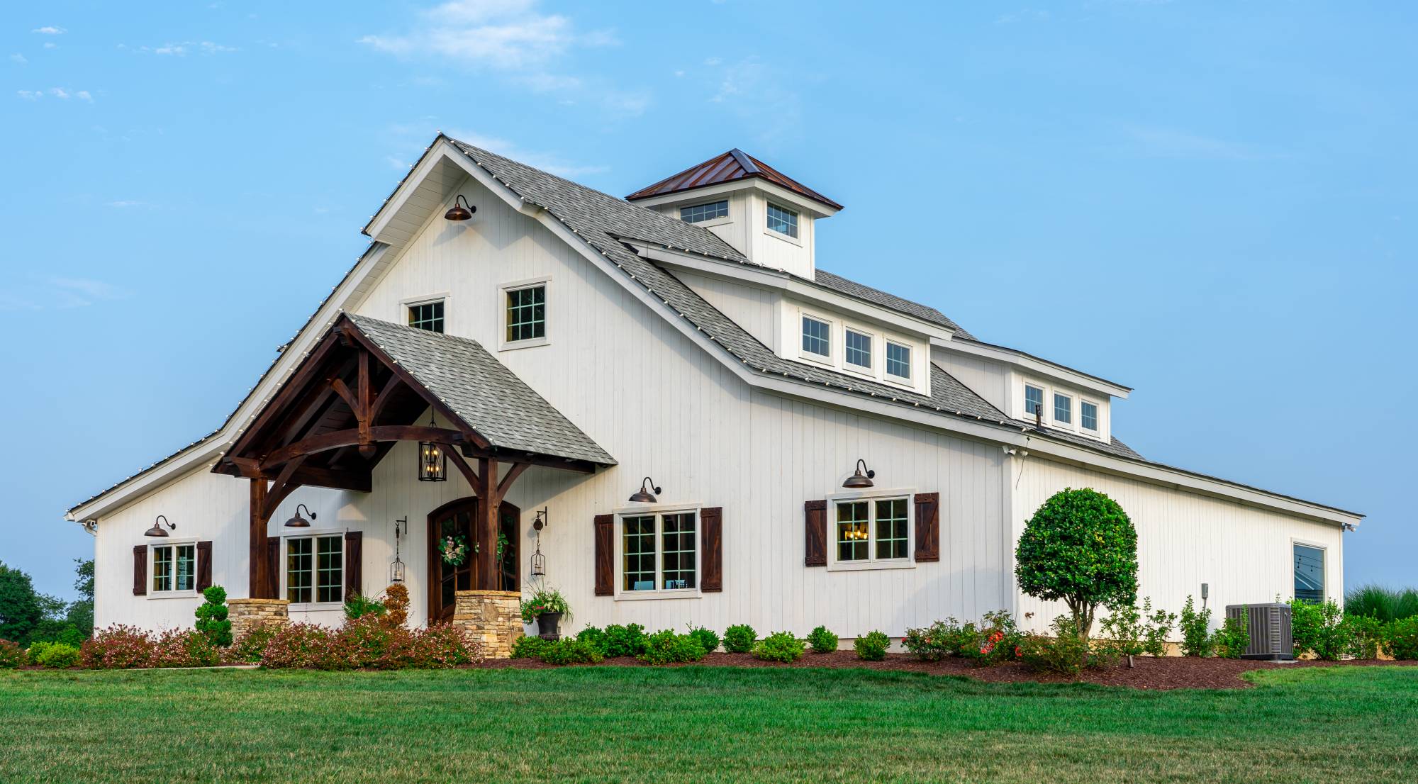 A center aisle design is at the heart of the Preakness Saratoga Barn, which features floor-to-ceiling posts that support the mid-span of the roof rafters. Half of the barn has an open cathedral ceiling; the other half has a loft for additional space upstairs. The Preakness has double lean-tos for even more room.